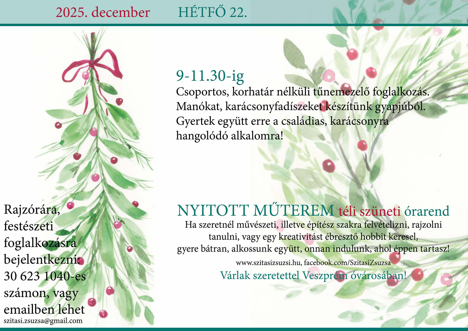 Adj alkotói élményt karácsonyra! 🧚♂️Szívesen tartok rajz, festő és nemezelő foglalkozásokat felnőtteknek és gyerekeknek, tesóknak, barátnőknek, de lehet ez egy Anya-Lánya program is. Választhattok, hogy egy 2-3 alkalmas műhelymunkában szeretnétek részt venni, vagy inkább rendszeresen jönnétek alkotni hozzám. 🎁🎀🖌✏️🖍💕